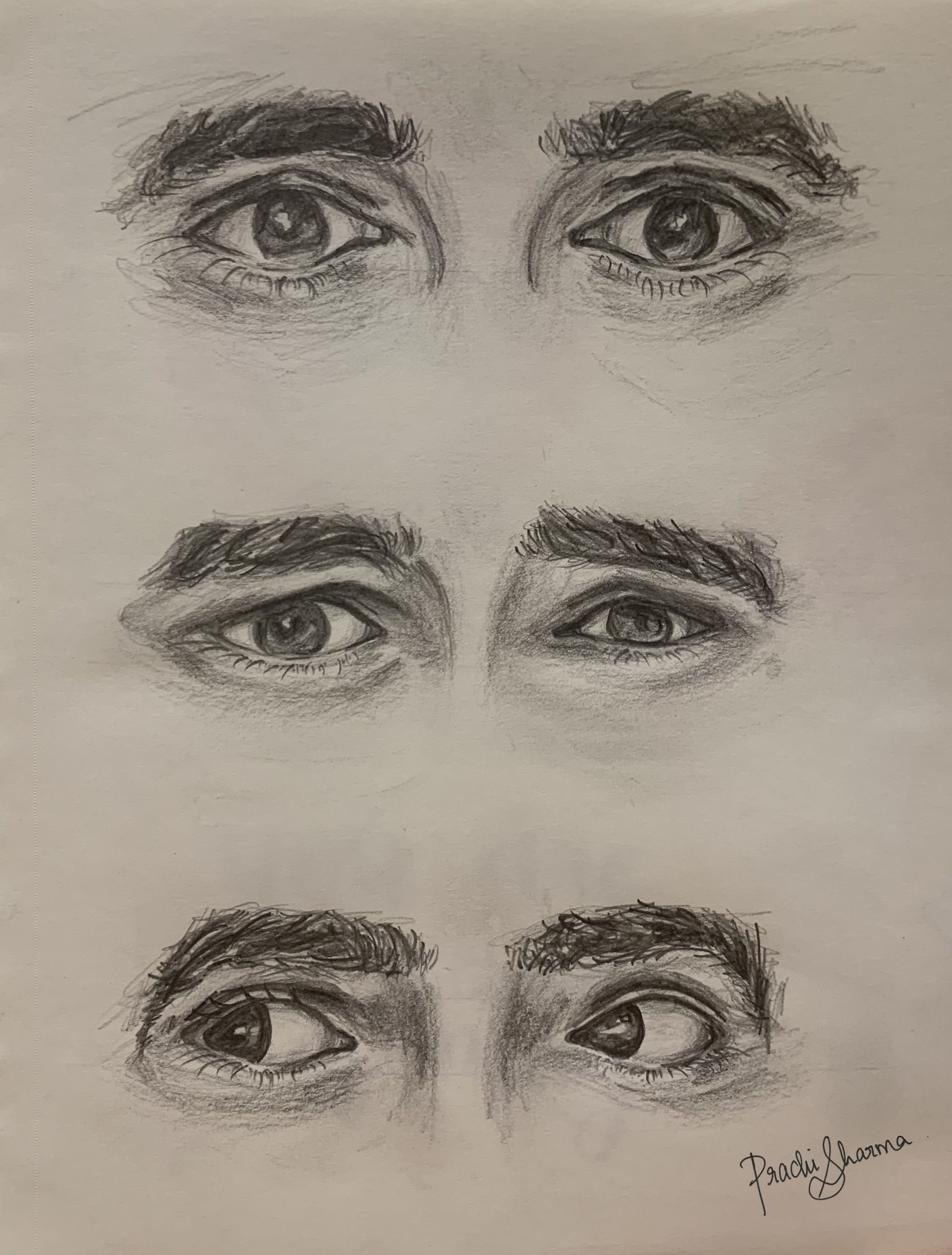 Each pair of eyes in this piece captures a fleeting yet potent emotion—curiosity, reflection, and suspicion—portrayed through subtle shifts in gaze and brow tension. The artist uses precise shading and deliberate contrasts to emphasize the uniqueness of each expression. With every glance frozen in graphite, the artwork invites viewers to interpret the inner worlds that lie behind these silent looks.